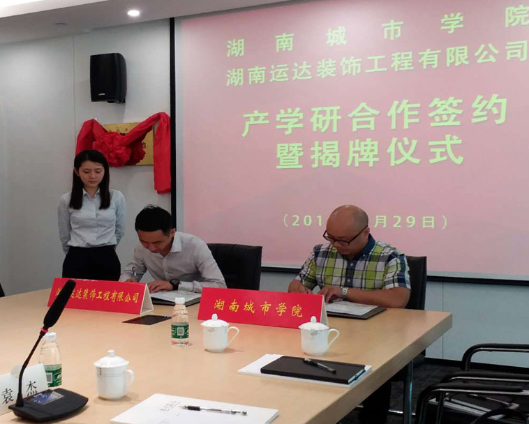 为推动公司产学研、就业创业工作与社会行业的深入对接,促进应用型人才培养深入开展。6月29日下午,艺术公司党委副书记张清华、经理助理孙红权、招生与就业处就业办主任邓荣、环境设计系主任王雨峰、党支部书记袁杰、教师代表邓铁桥一行6人,前往湖南运达装饰工程公司签署校企协议。公司总经理孙瑞东、副总经理陈鸿、刘振兴、熊立波等领导出席签约与双方合作揭牌仪式。