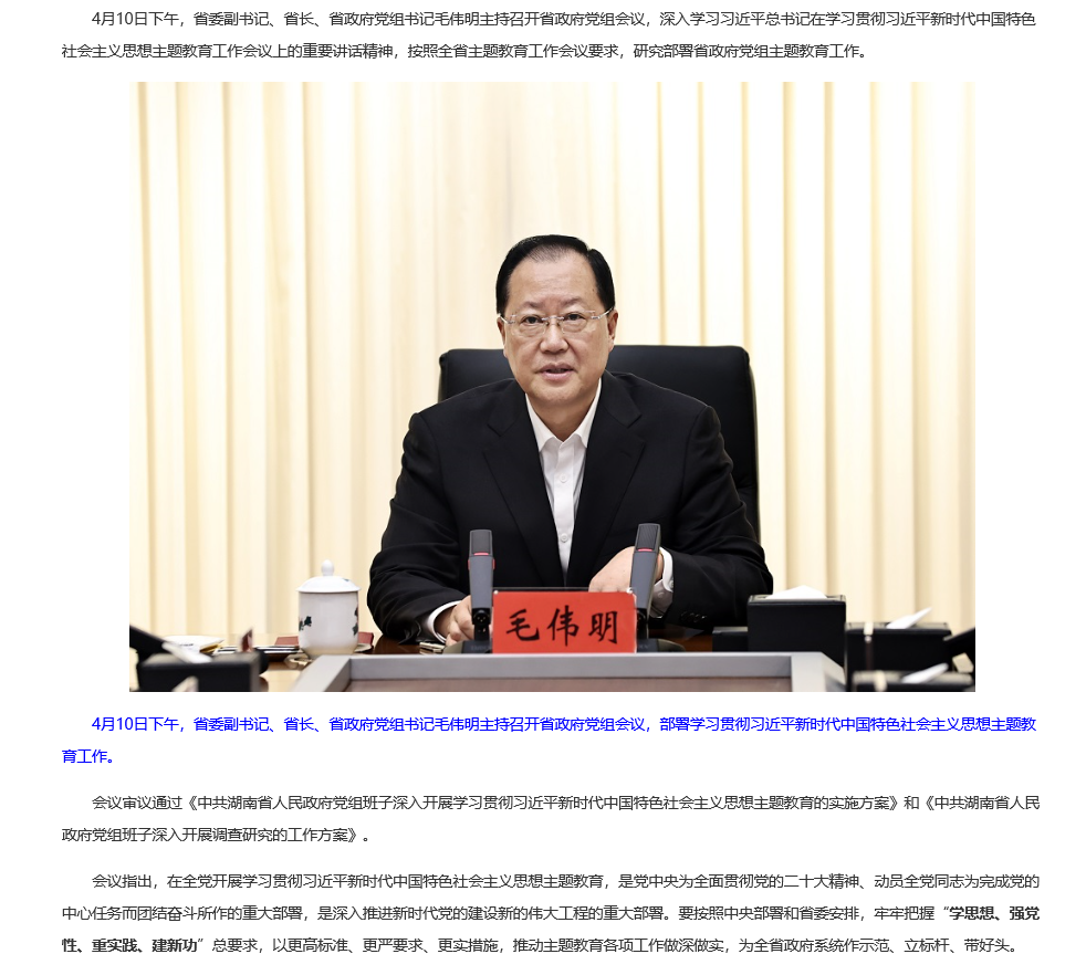 毛伟明主持省政府党组会议部署主题教育工作