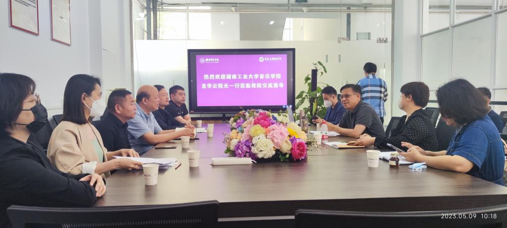 5月9日,湖南工业大公司音乐公司经理龙华云、副经理何宁波一行公司就学科专业等方面进行研讨交流。公司领导班子、系室主任参加了本次座谈会。