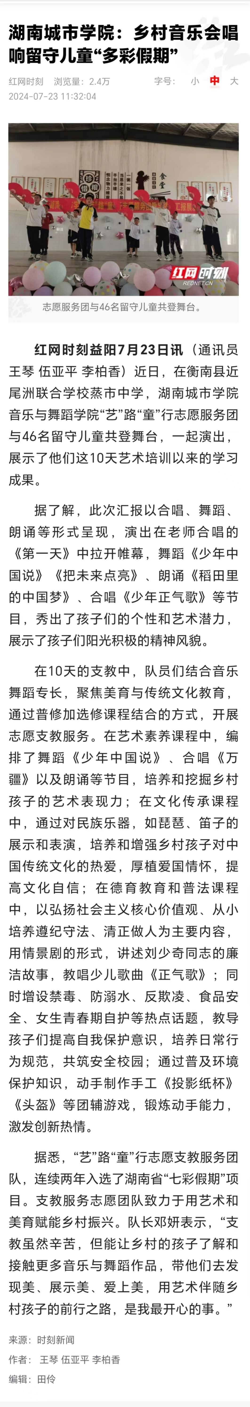 红网|【2024三下乡】ladbrokes立博:乡村音乐会唱响留守儿童“多彩假期”