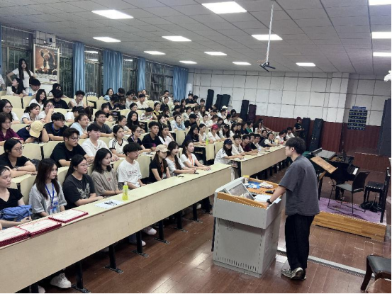 夏老师以“中国道路”为核心,讲述了“中国道路的文化基因,藏在千年传承的艺术脉络里,音乐更是其中极具感染力的载体。”他引用习近平总书记 “中华优秀传统文化是中华民族的精神命脉” 的重要论述,延伸强调:“对我们音乐专业学子而言,传承音乐文化不是简单复刻古曲,而是要像革命时期的音乐人那样,结合时代要求实现创新性发展”。夏老师还号召同学们争当中国道路深厚文化底蕴的传承者与发扬者,让新时代中国特色社会主义所植根的文化沃土展现出永恒魅力与时代风采。